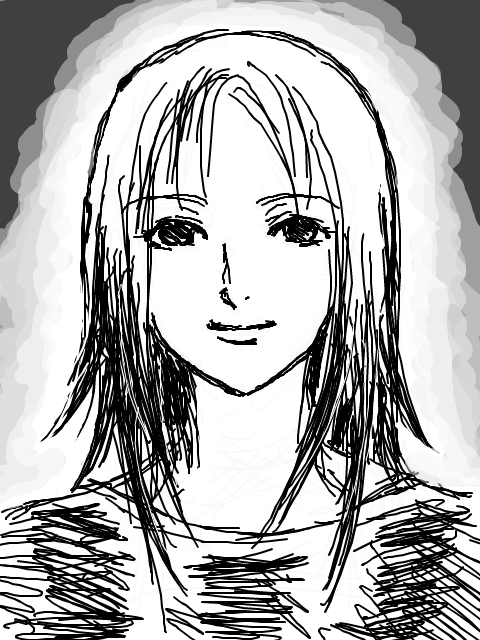 はい。天使ちゃんの表情がですね、最初は本当に「天真爛漫」な笑顔で、それもとってもキュートだったのですけれど、今回の絵には若干物足りないなあ...(だから何様だっ!!)と思いまして、今の表情になり、ま、した...(ゴフッ☆)。