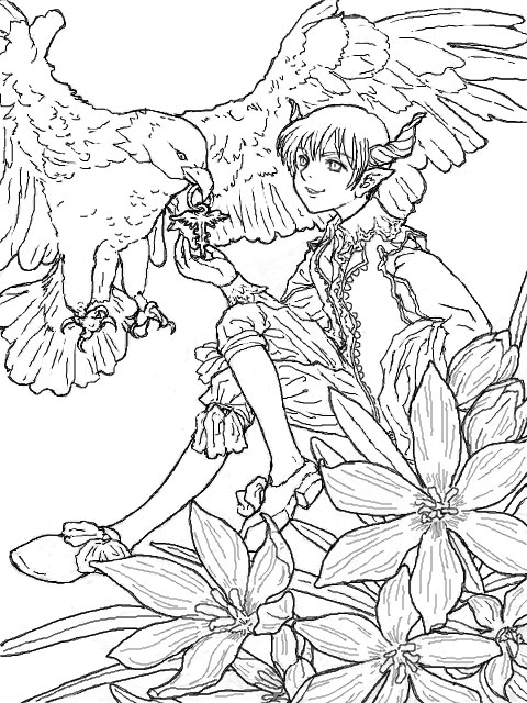 一方、ウツキさんから頂いた天使ちゃんの線画がこちら♪