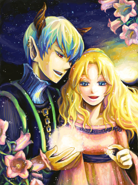 nishihoさんはそこから星の瞬く夜の世界を展開、本元のカンパニュラの花も添え、尚且つ、コスチュームはWDで着用したそのものズバリを採用してくださいました!! これで感激しなかったら人間止めます!!(落ち着け私)