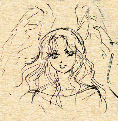 はい。天使ちゃんの表情がですね、最初は本当に「天真爛漫」な笑顔で、それもとってもキュートだったのですけれど、今回の絵には若干物足りないなあ...(だから何様だっ!!)と思いまして、今の表情になり、ま、した...(ゴフッ☆)。